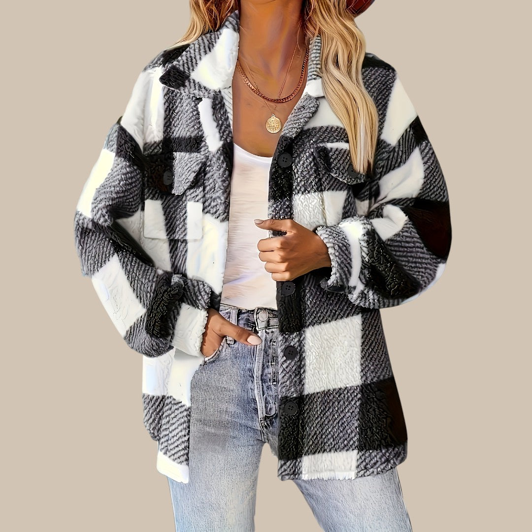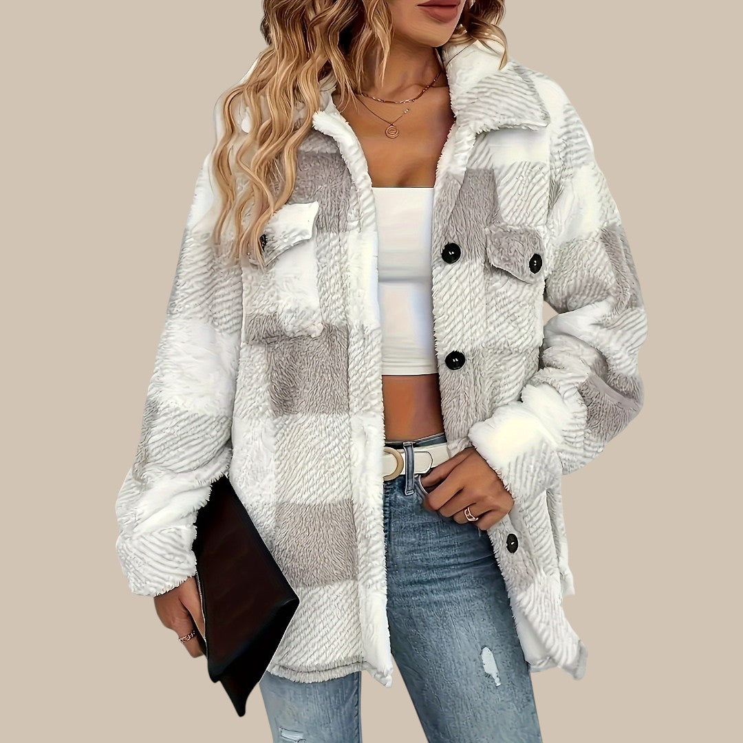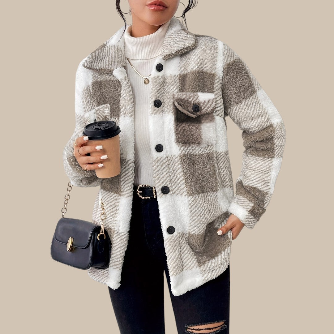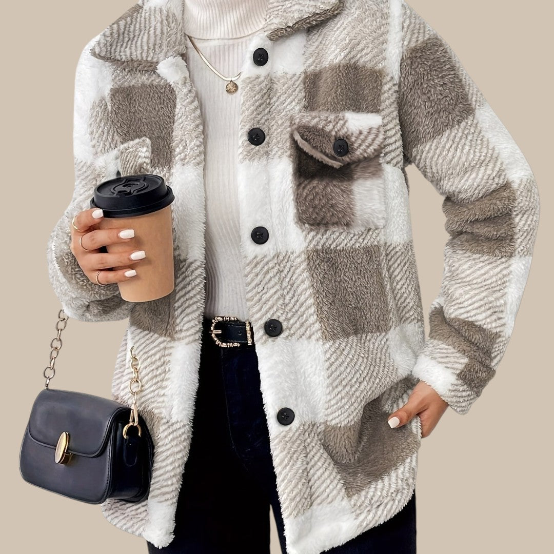 Clara rutet knapjakke er fremstillet af en kvalitetsblanding af bomuld, der føles blød mod huden og samtidig holder faconen. Den klassiske regular fit giver komfortabel bevægelsesfrihed, mens silhuetten forbliver elegant og velplejet. Det lige snit fremhæver en harmonisk figur, og de lange ærmer tilføjer et sofistikeret touch. Med det tidløse rutemønster og knaplukningen udstråler jakken alsidighed og passer perfekt til ethvert outfit.