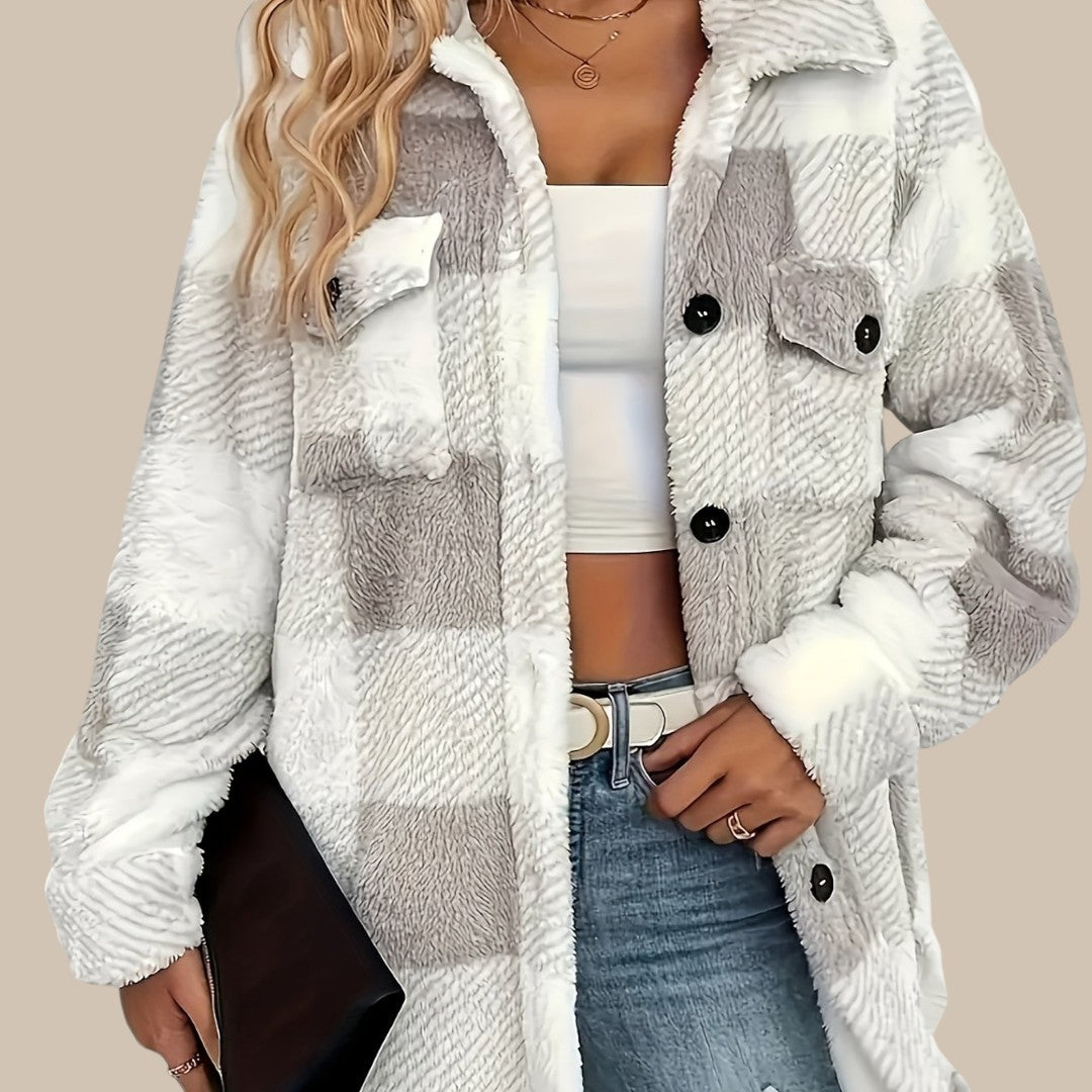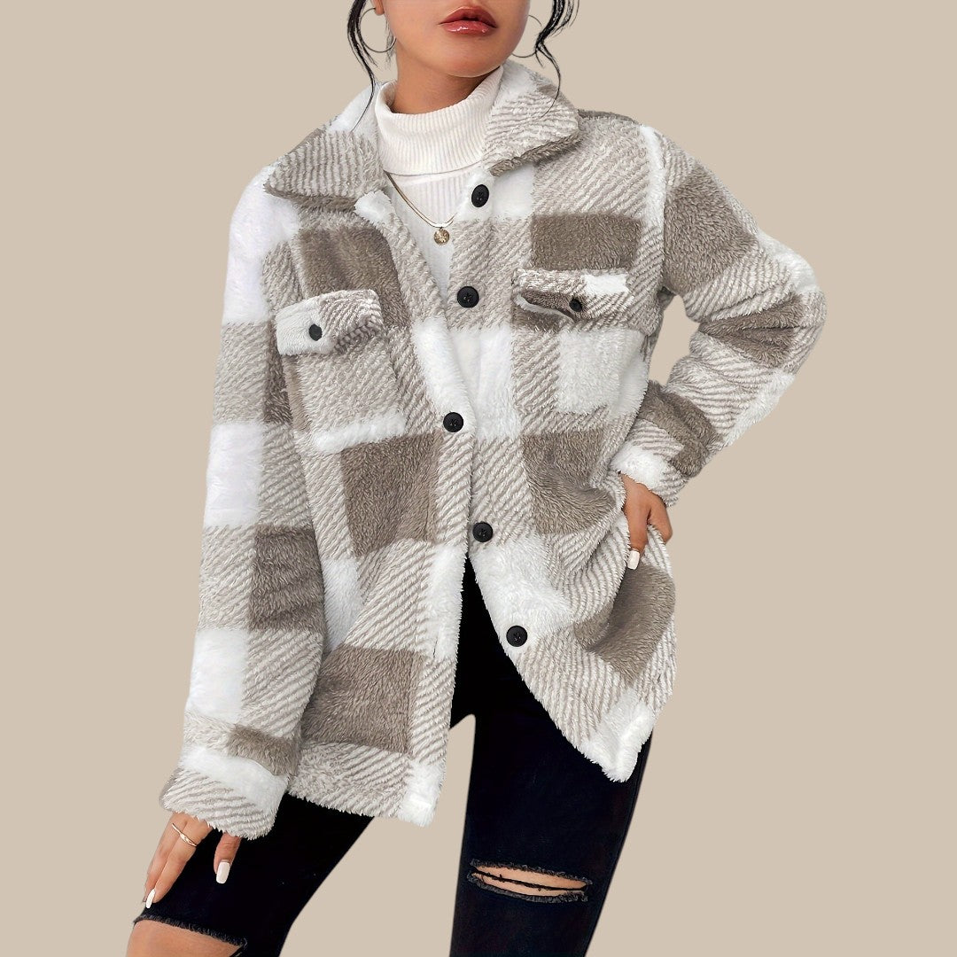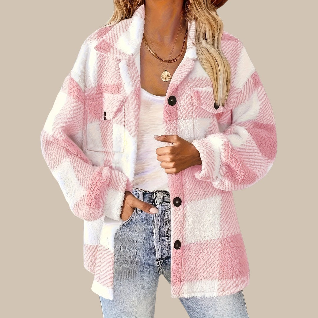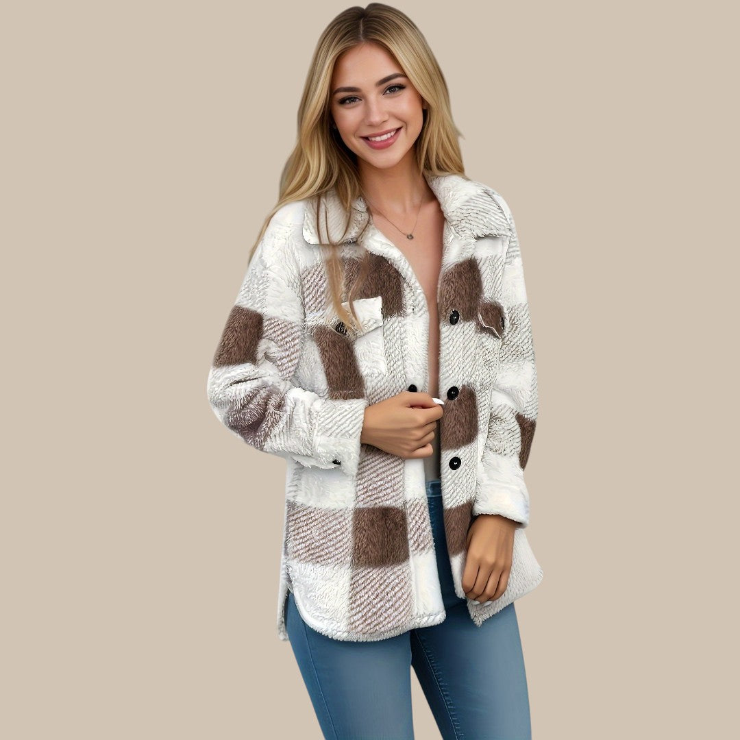 Clara rutet knapjakke er fremstillet af en kvalitetsblanding af bomuld, der føles blød mod huden og samtidig holder faconen. Den klassiske regular fit giver komfortabel bevægelsesfrihed, mens silhuetten forbliver elegant og velplejet. Det lige snit fremhæver en harmonisk figur, og de lange ærmer tilføjer et sofistikeret touch. Med det tidløse rutemønster og knaplukningen udstråler jakken alsidighed og passer perfekt til ethvert outfit.