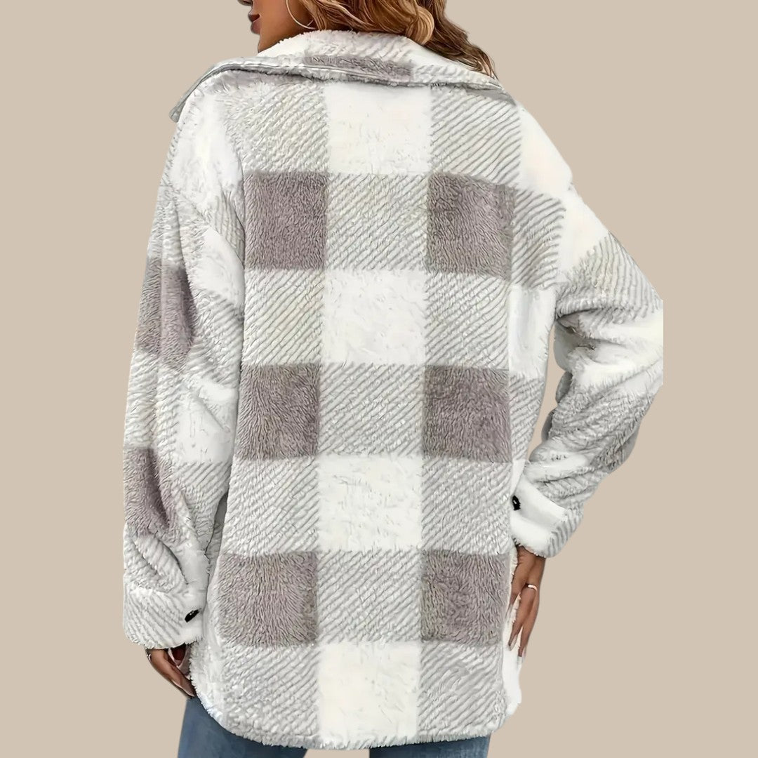 Detaljer: Lange ærmer, knaplukning, rutemønster
