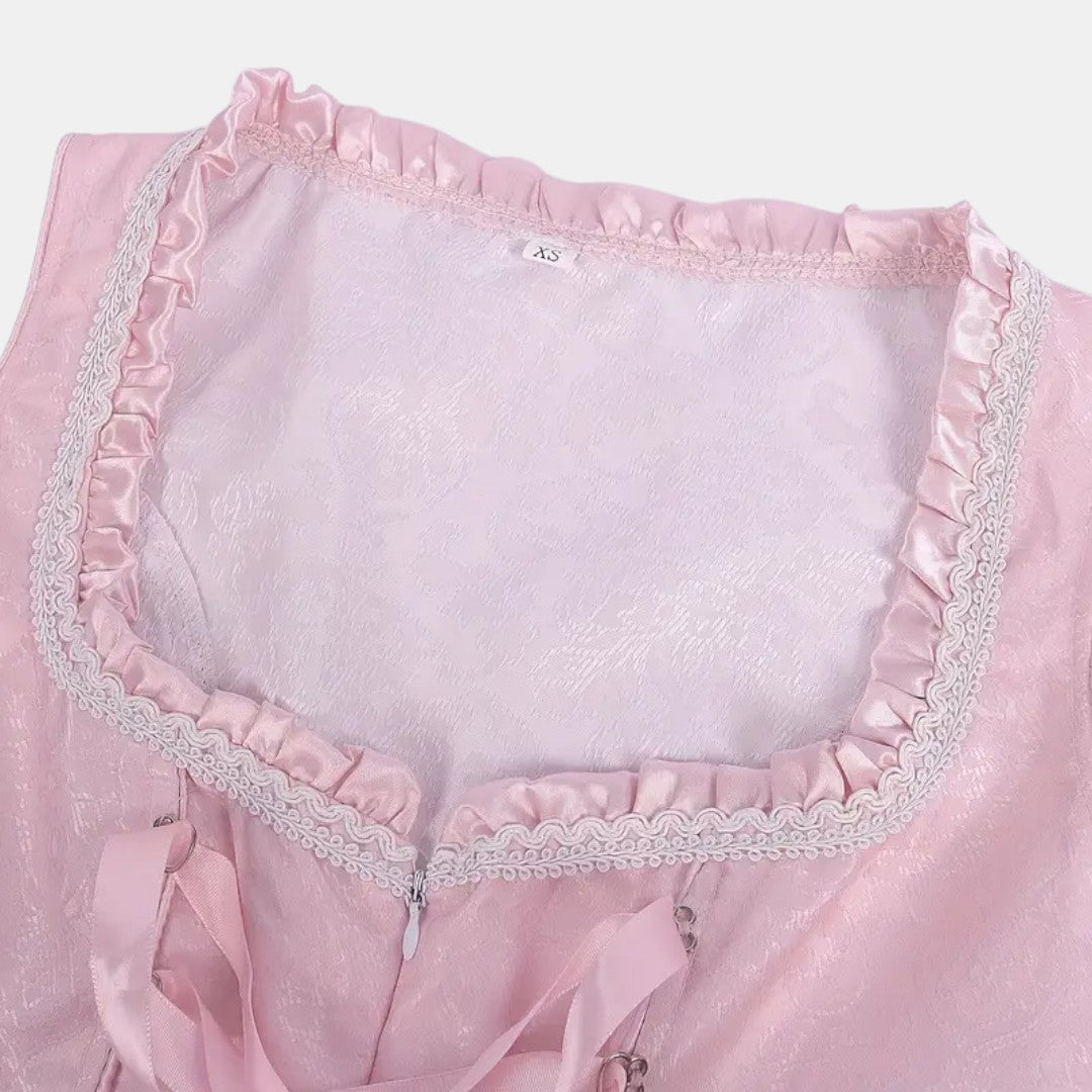 Charmerende detaljer med blonder, sløjfe og bånd der giver ekstra festlighed