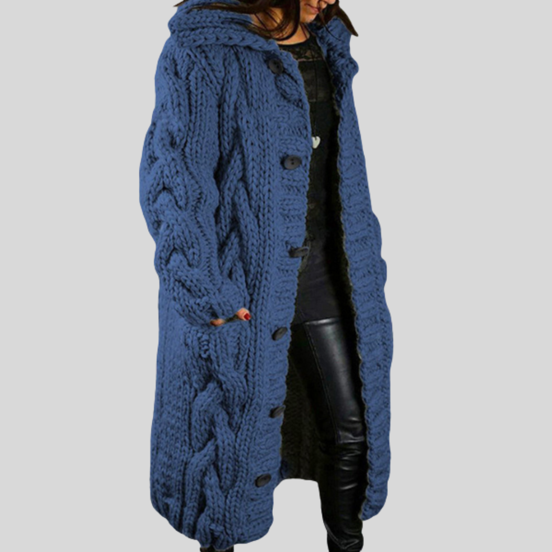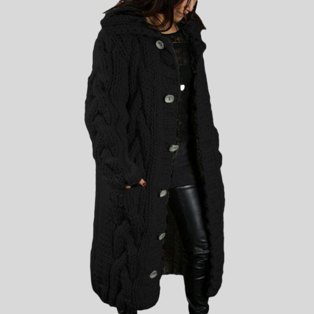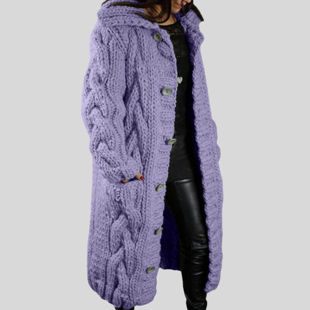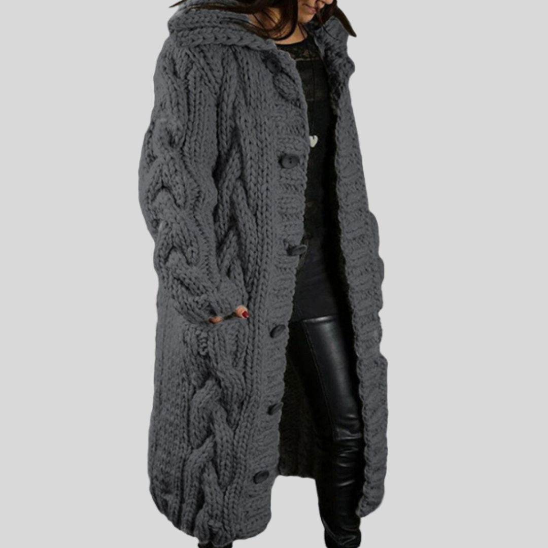 Mathilde™ cardigan är den perfekta kombinationen av klassisk design och moderna detaljer. Med ett vackert kabelmönster och en överdimensionerad passform ger den den perfekta balansen mellan lyx och komfort. Den är tillverkad i ett mjukt, varmt tyg och har en knappknäppning som du kan justera för en avslappnad eller sofistikerad look. Den här koftan är allt du behöver för att navigera stilfullt genom de kallare månaderna.
